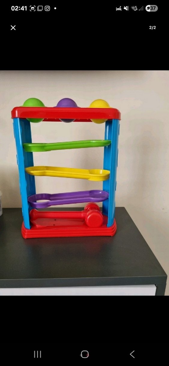 Kızım severek oynadı . renkli eğitici oyuncak, topların yuvarlanması için çeşitli rampalar içerir ve el-göz koordinasyonu ile motor becerilerini geliştirir. Üç top ve bir çekiç dahildir.