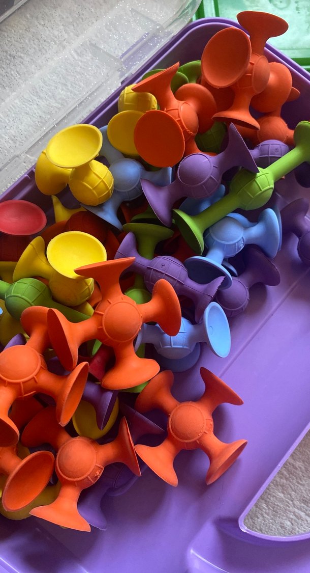 Yaratıcılığı ve motor becerileri geliştiren, çok renkli, birbirine geçmeli eğitim oyuncağı seti.