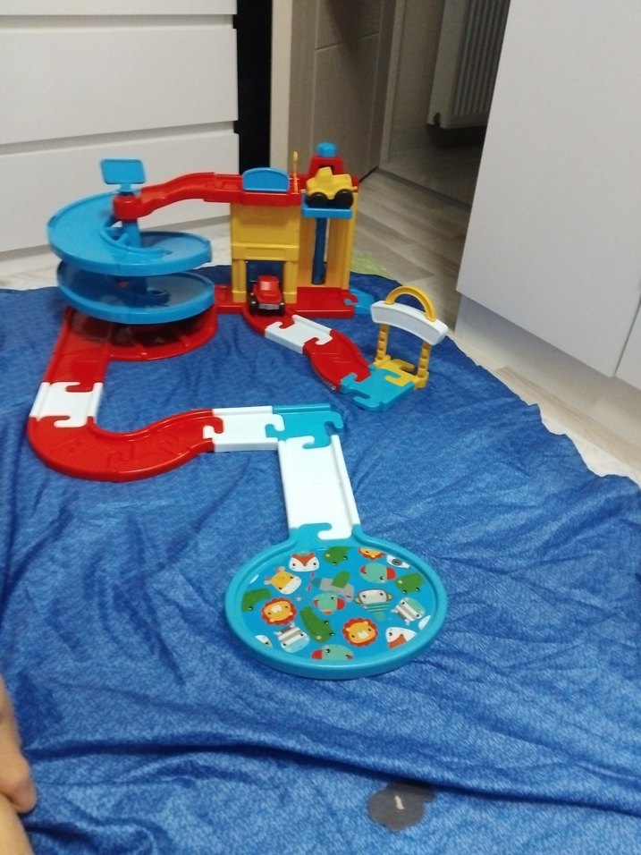 Mavi temalı, renkli parçalardan oluşan eğitim oyuncak seti, spiral rampası ve hayvan figürlü oyun alanlarıyla çocukların öğrenmesini destekler. Çok iyi durumda resimde görüldüğü gibi büyük set araba parkuru arada sırada çıkardım toplamda 5 kez oynamıştır anca