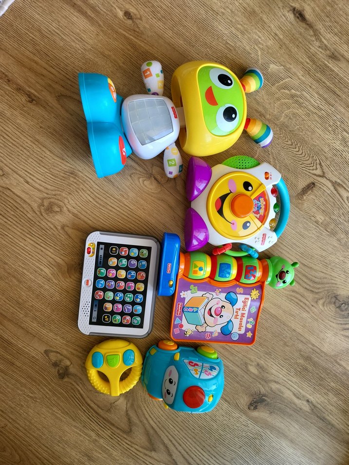 Çocukların ilgisini çeken robot, interaktif tablet, direksiyon ve müzik aletleri içeren renkli eğitim oyuncakları seti. ev taşıyacağım için satıyorum robotta pil kapağında çatlak var vida oldugu için açılmıyor çizikler mevcut ,elektronik olarak bi sıkıntısı yok isteyene video da gönderebilirim , winfun kumandalı araba çok eğlenceli hiç bi sıkıntısı yok ,diğerleri de aynı şanlıurfa isteyen elden de alabilir. ayrı ayrı da alınabilir.