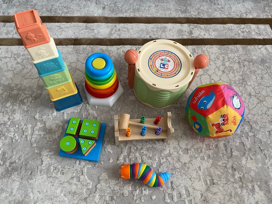Çocukları eğlendiren ve geliştiren renkli eğitim oyuncakları seti, halka dizme, davul, şekil eşleştirme ve ahşap çekiçli oyuncak içerir. Tek tek yada istediğiniz ürünleri kargolarım fiyat sorunuz