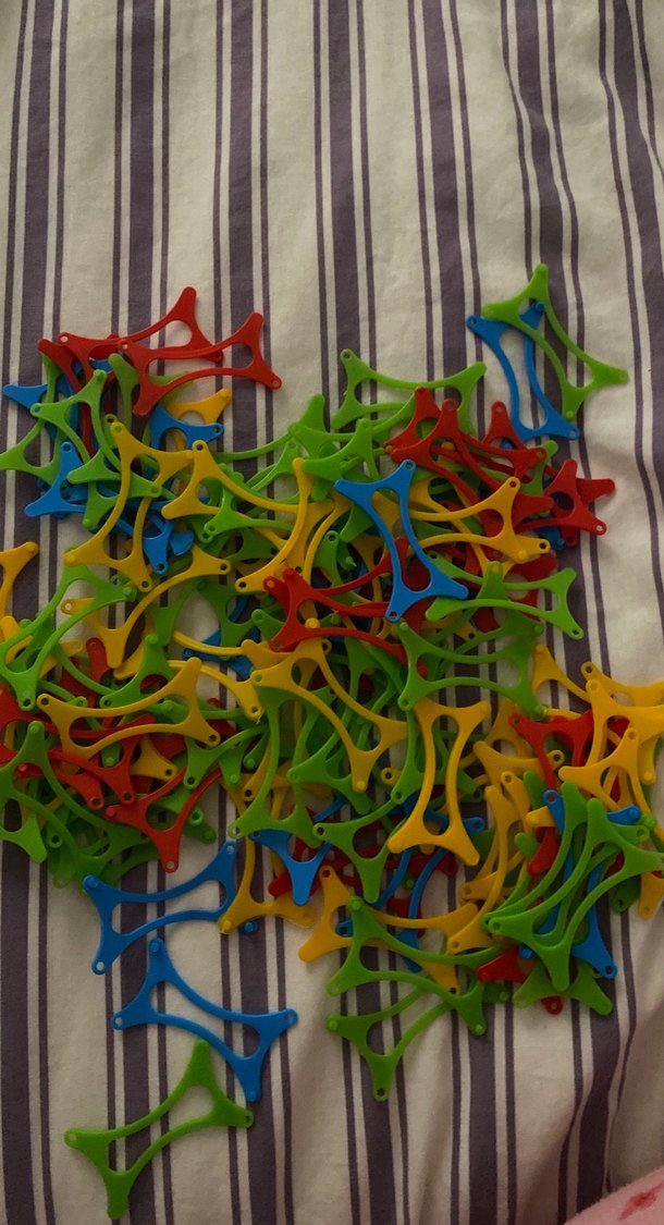 Yaratıcı öğrenme ve oyun için çeşitli renklerde birbirine geçen parçalar içeren renkli eğitim oyuncakları seti.