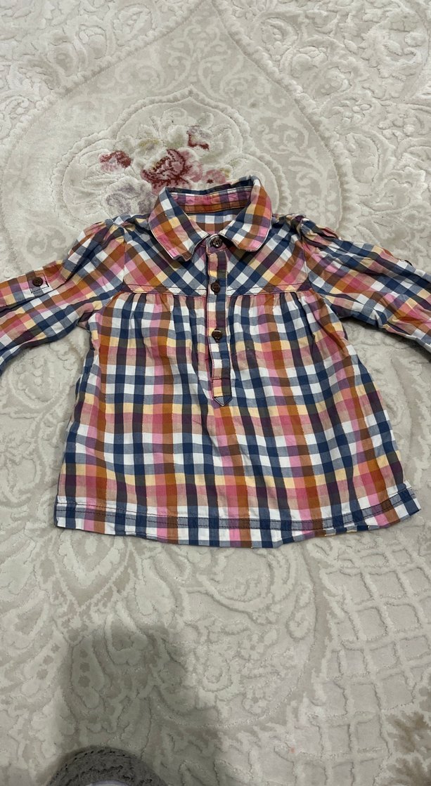 Renkli ekose desenli, uzun kollu ve yakalı erkek çocuk gömleği. Düğmeli ve bol kesimdir.