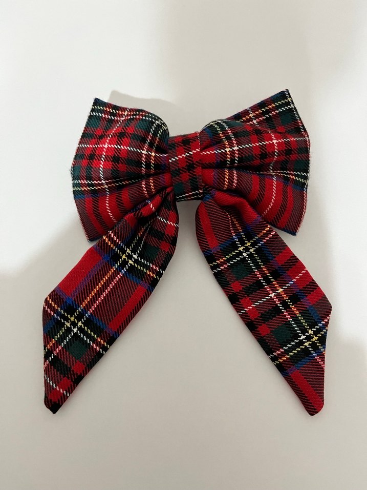 Kırmızı, yeşil ve lacivert renklerde, ekoseli kumaştan fiyonk toka. Özel günlerde veya günlük kullanımda şık bir aksesuar seçeneği.