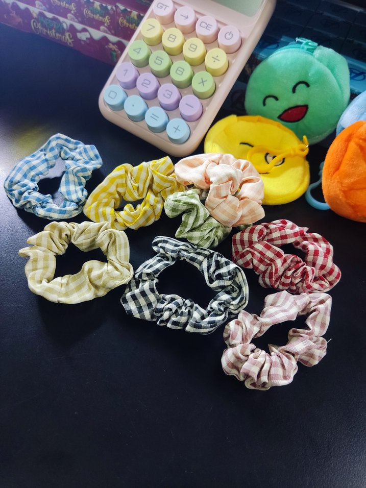 Renkli Ekose Desenli Lastikli Kadın Saç Tokaları - Görsel 1