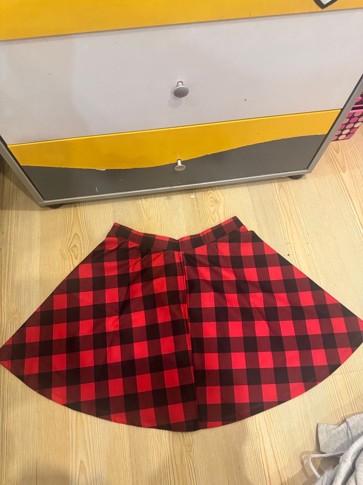 Renkli kırmızı ekose desenli midi etek, pilili ve bol kesimlidir. Sentetik kumaştan yapılmıştır, rahat ve günlük kullanım için uygundur.