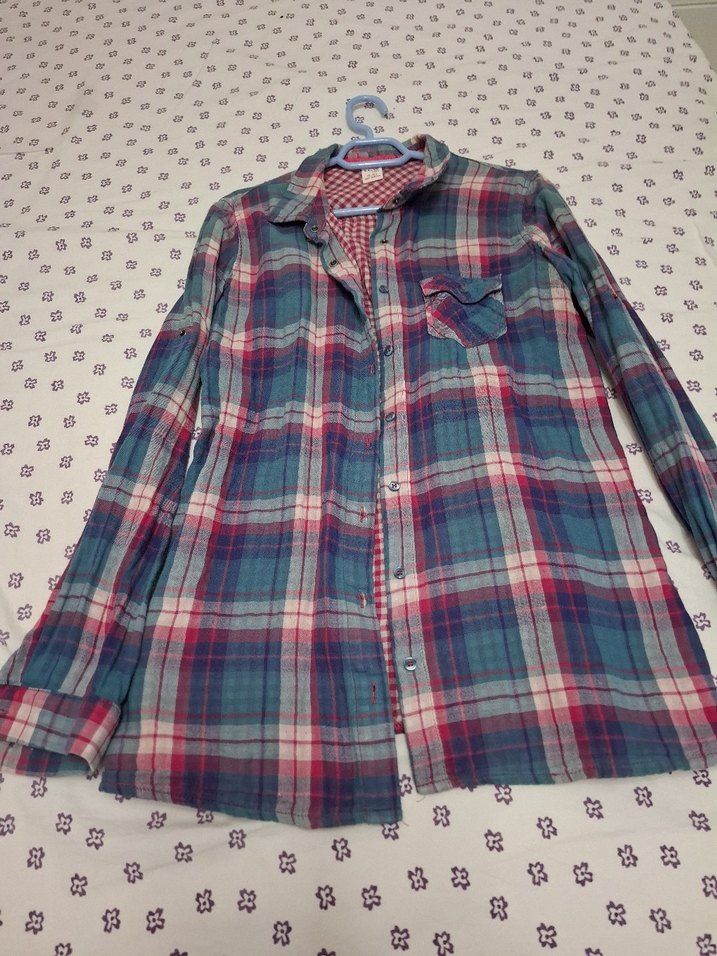 Renkli pamuklu gömlek, uzun kollu ve yakalıdır. Düğmeli önü ve salaş kesimiyle gündelik sokak stiline uygundur.