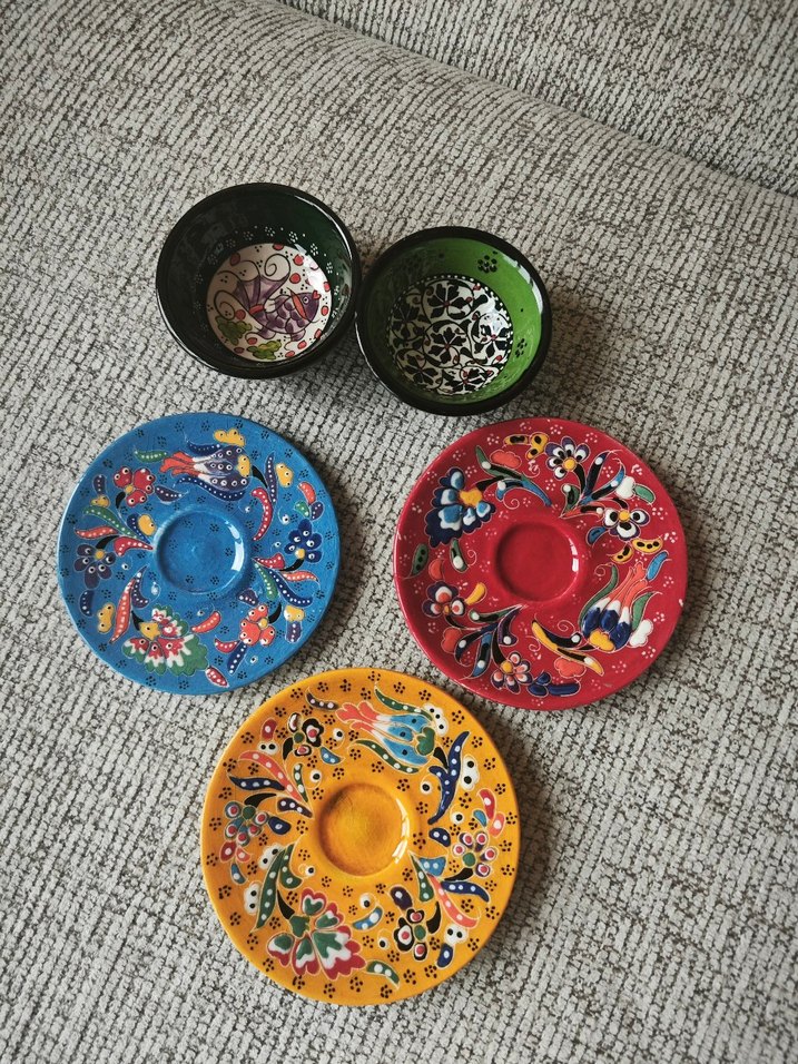 Renkli El Boyaması Seramik Tabak ve Kase Seti