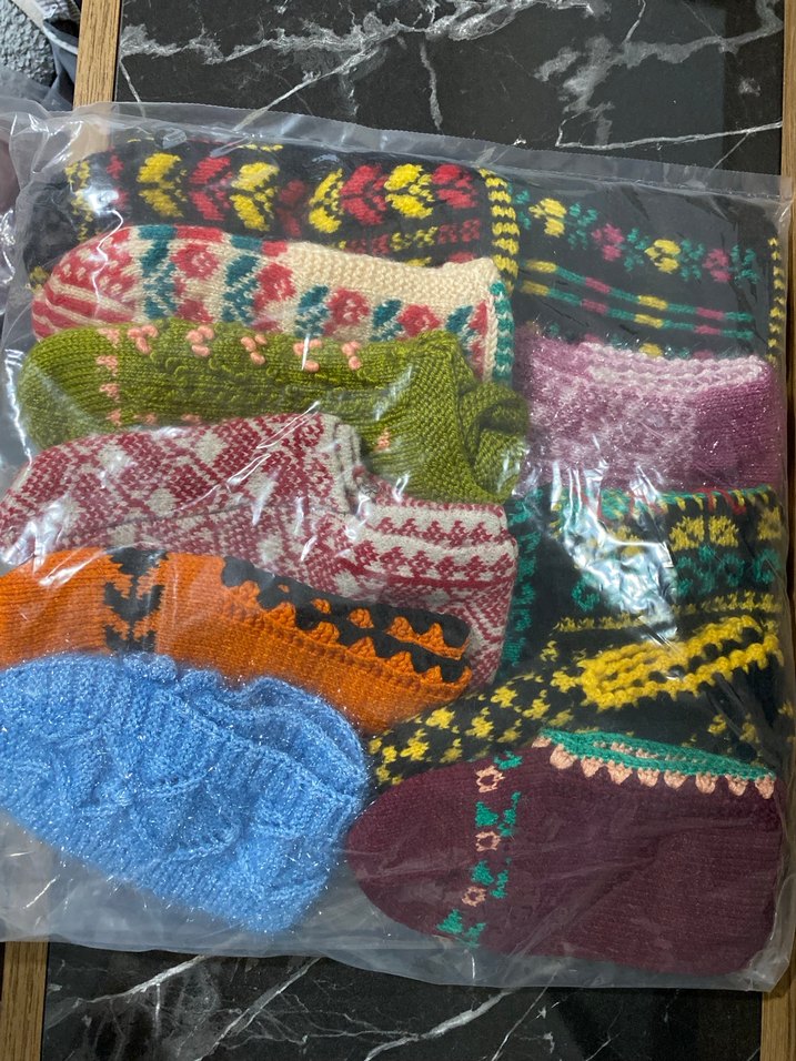 Farklı desen ve dokularda, canlı renklerle örülmüş bohem tarzı örgü çorap seti. Her biri kendine özgü tasarıma sahip. Adet fiyattır