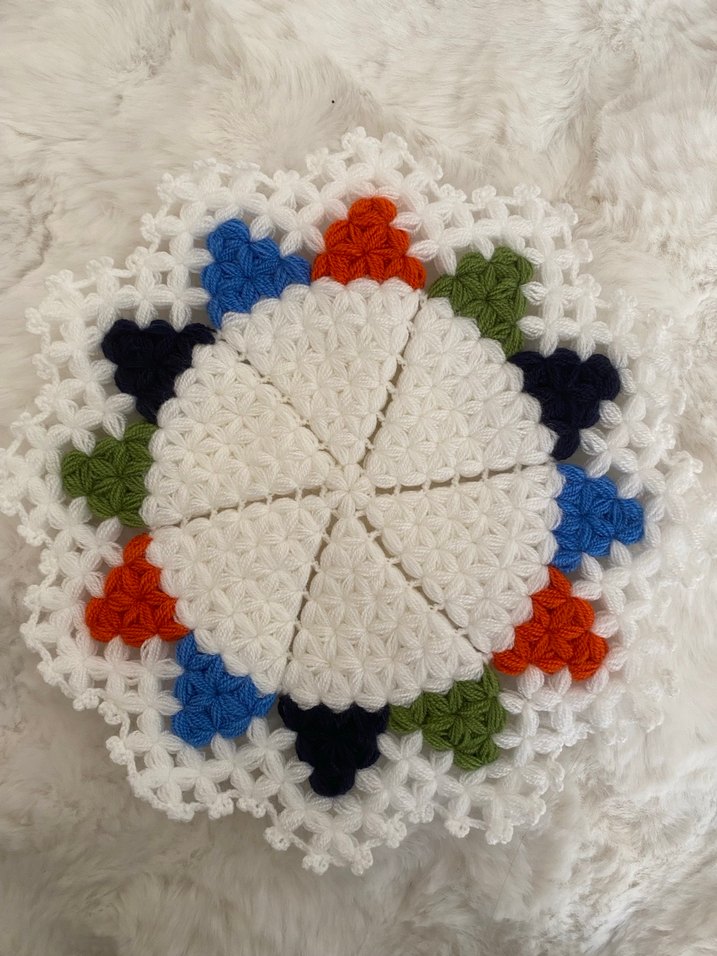 Yumuşak iplikle el örmesi, beyaz tabanlı ve renkli banyo lifi