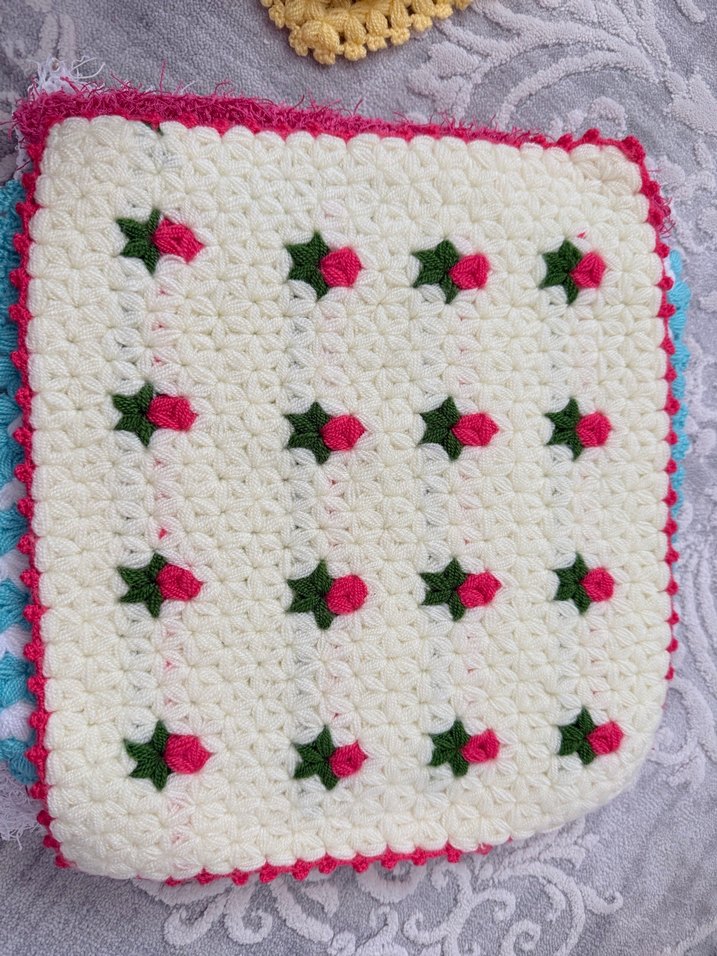 Çiçek desenli renkli el örgüsü banyo süngeri, yumuşak dokuya sahiptir. Nazik temizlik için uygundur.