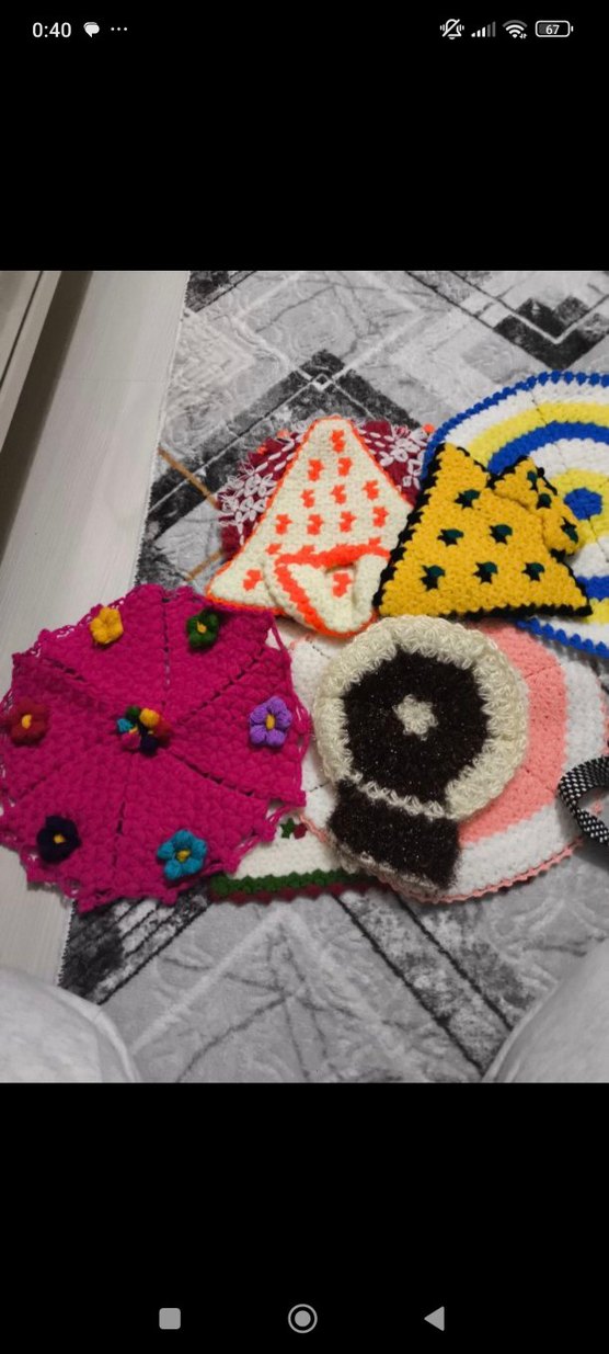 Çeşitli desen ve şekillerde, el örgüsü renkli banyo süngerleri, banyo için farklı bir doku sunar.