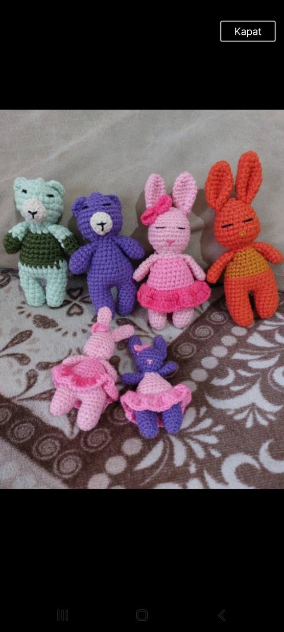 Renkli El Örgüsü Peluş Oyuncak tavşan ve ayıcık