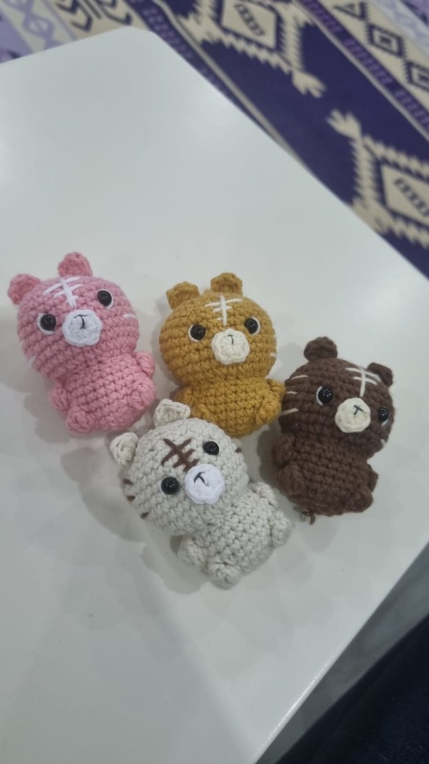 Renkli, el örgüsü peluş oyuncaklar, dikiş detaylı sevimli hayvan figürleriyle. Yumuşak ve şirin koleksiyonluk oyuncaklar.