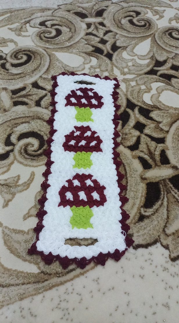 Mantar desenli, yumuşak dokulu, kullanımı kolay saplı renkli el yapımı banyo lifi