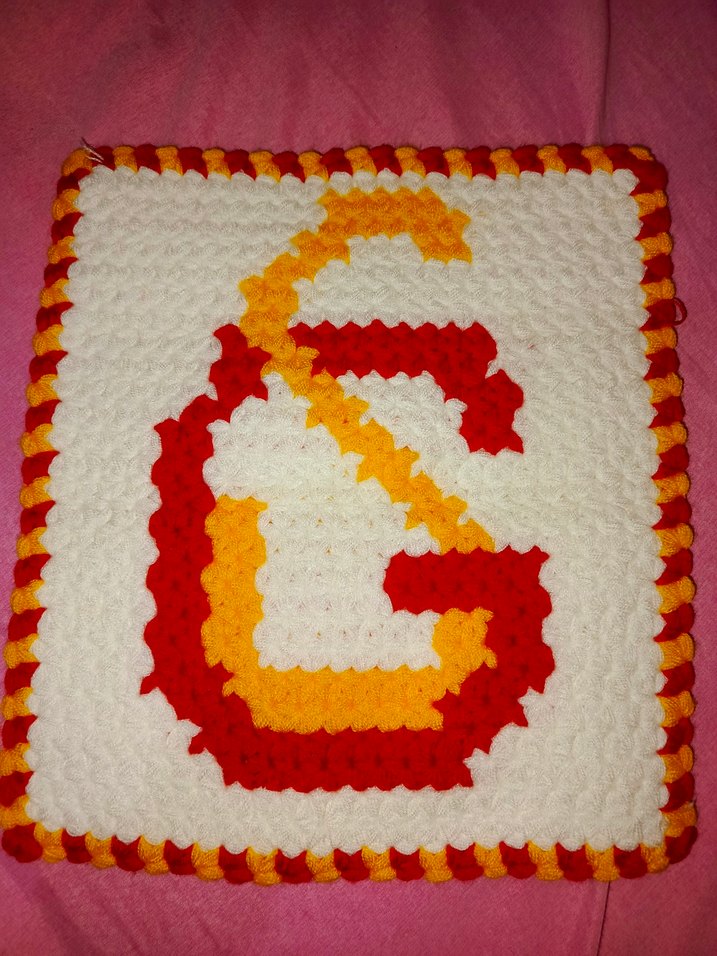 Kırmızı, turuncu ve sarı renkli canlı kenarlarla dokulu desenli renkli el yapımı banyo süngeri.