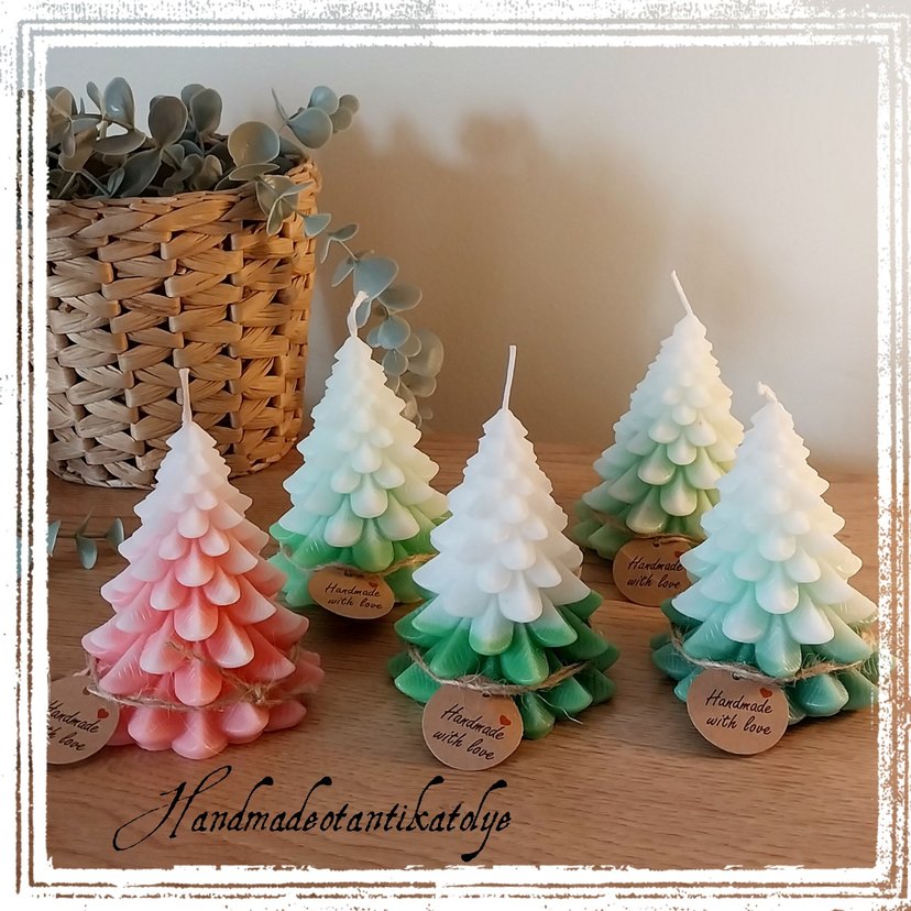 Renkli, katmanlı tasarıma sahip, yılbaşı sofranıza renk katacak el yapımı çam ağacı mumlar. Tek adet fiyatıdır. Renk tercihi yapabilirsiniz.