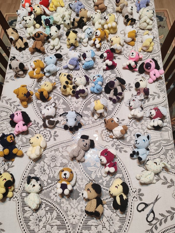 Dantel masa örtüsü üzerinde çeşitli hayvan figürlerinde renkli el yapımı peluş oyuncaklar. Her oyuncak yumuşak iplikle özenle yapılmıştır. ✨ADET fiyatı dır