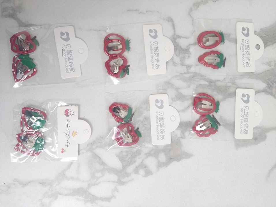 Renkli Elastik Çilek Desenli Çocuk Toka Seti
