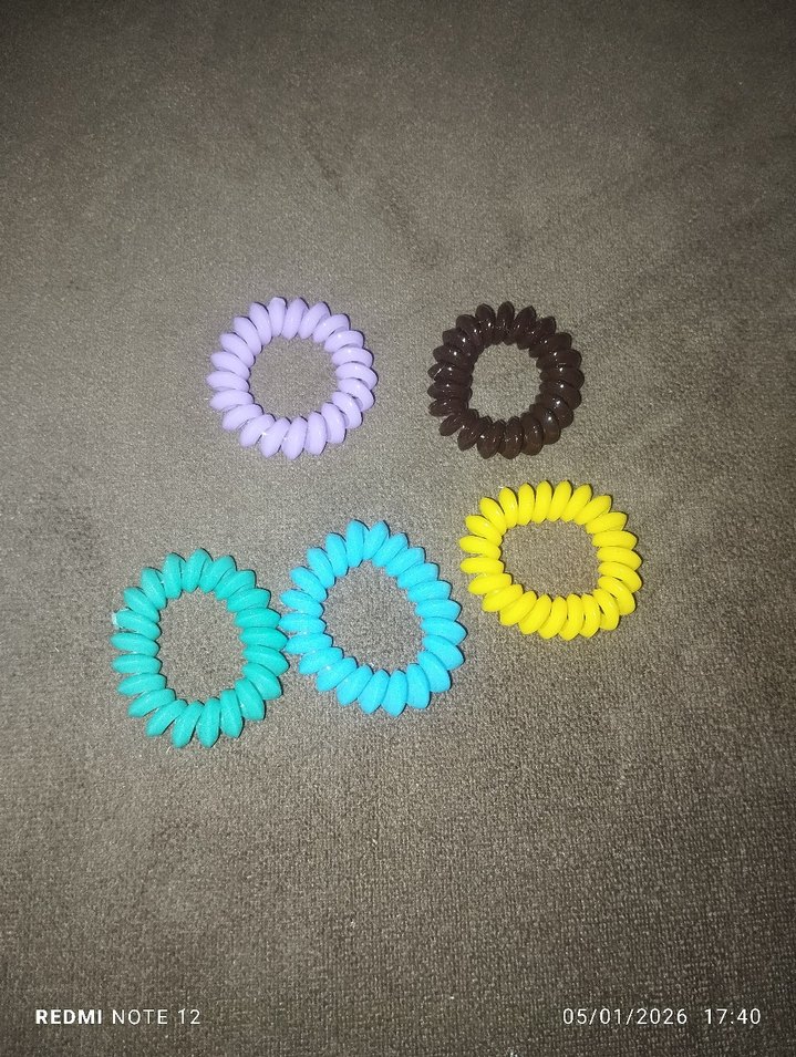 Çocuklar için renkli elastik saç tokaları. Retro ve tie-dye tarzında, bohem bir görünüm sağlar. 5 adettir