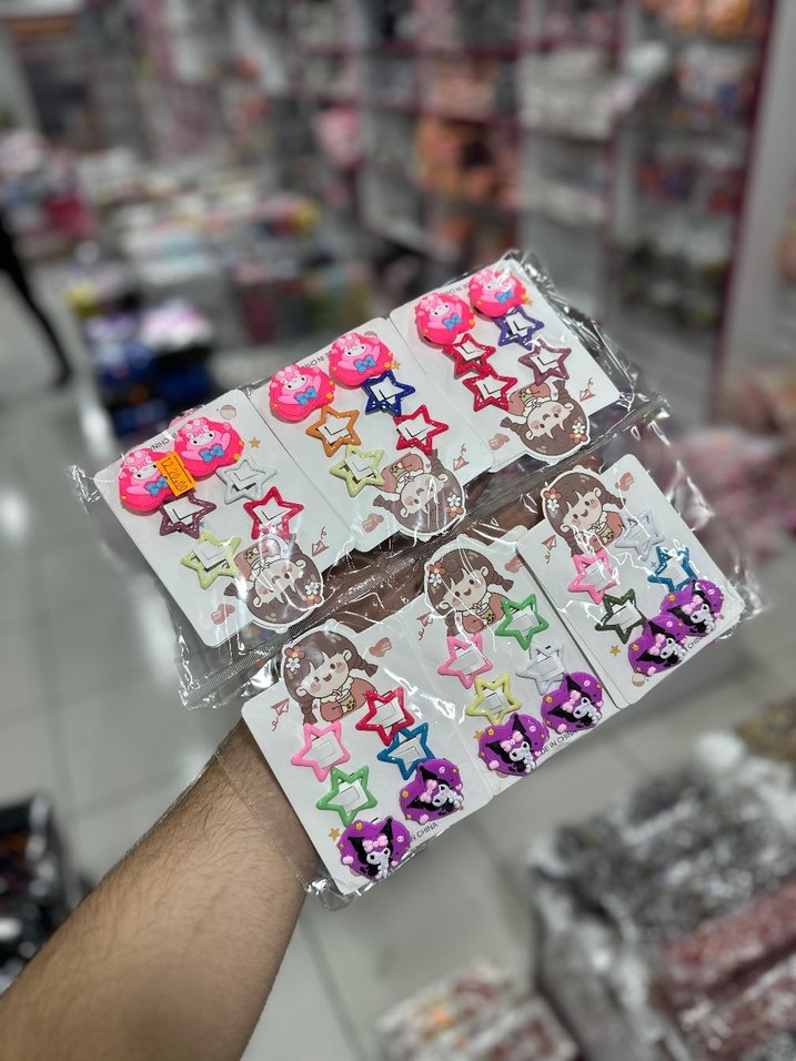 Renkli, elastik çocuk saç tokaları, rock punk tarzında baskılı yıldız desenleriyle. Çok renkli tokalar saçlara eğlenceli bir stil katıyor.