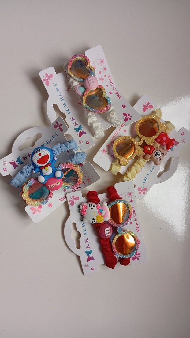 Renkli, elastik çocuk saç tokaları ve bantları, baskılı desenler ve eğlenceli figürlerle. Her sette kalpli aynalar ve canlı aksesuarlar bulunur.