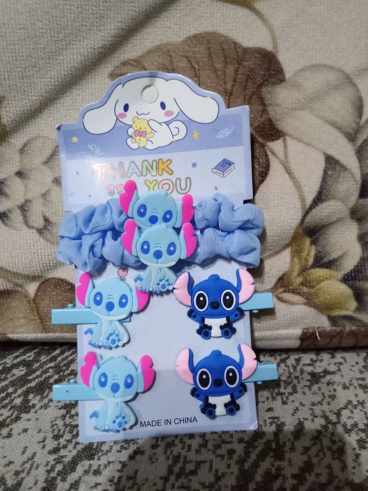 Mavi renkli, baskılı pop kültür figürlü elastik çocuk saç tokası ve toka seti. Rahat kullanım sağlar.