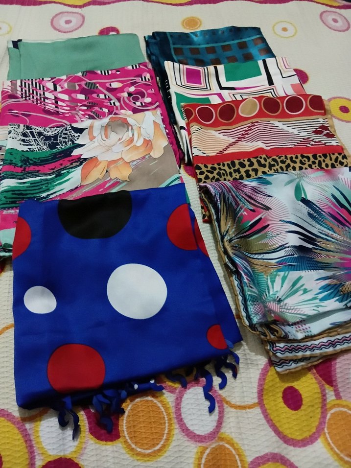 Yumuşak sentetik kumaştan, elastik özellikli, bohem ve retro tarzlara uygun renkli kadın eşarpları.