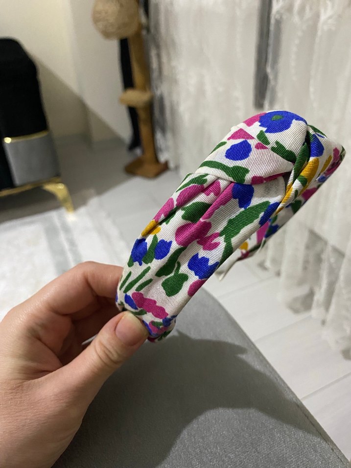Renkli çiçek desenli, elastik yapıya sahip kadın saç bandı, bohem ve retro tarzını yansıtır.