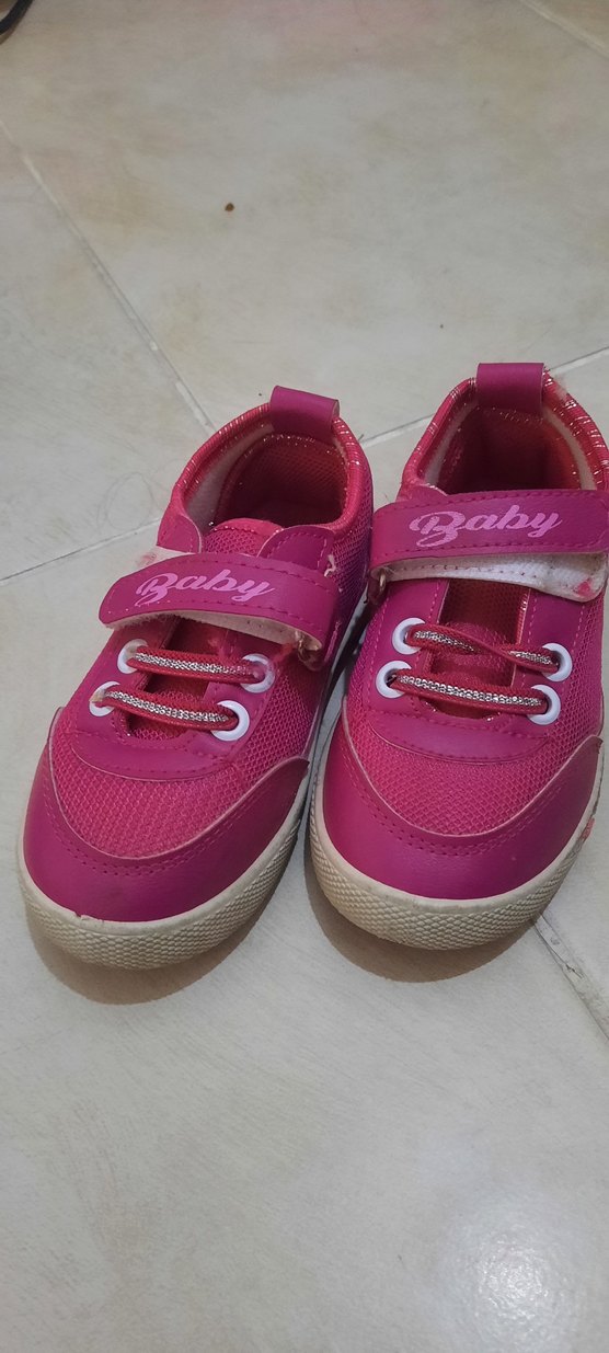 Elastik bantlı, renkli baskılı pembe kız çocuk spor ayakkabısı. Kauçuk tabanlı, sokak stiline uygun rahat model.