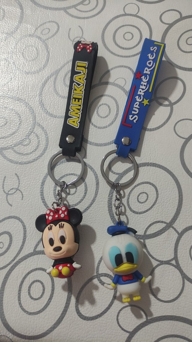 Elastik yapıda, renkli Minnie ve Donald figürlü anahtarlıklar. Sokak modası tarzında, anahtarlarınız için eğlenceli bir dokunuş sağlar. ️ ikisinin fiyatidir