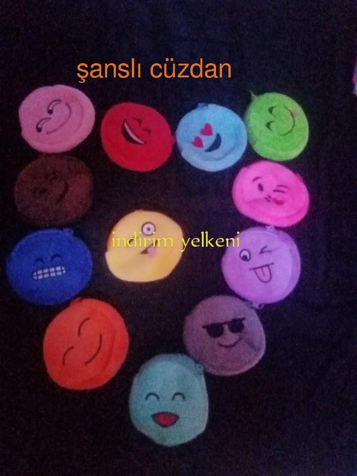 Çeşitli emoji yüzleriyle renkli cuzdanlar ve içinden 11 harika ürün çıkıyor sınırlı sayıda koşan yetişiyor