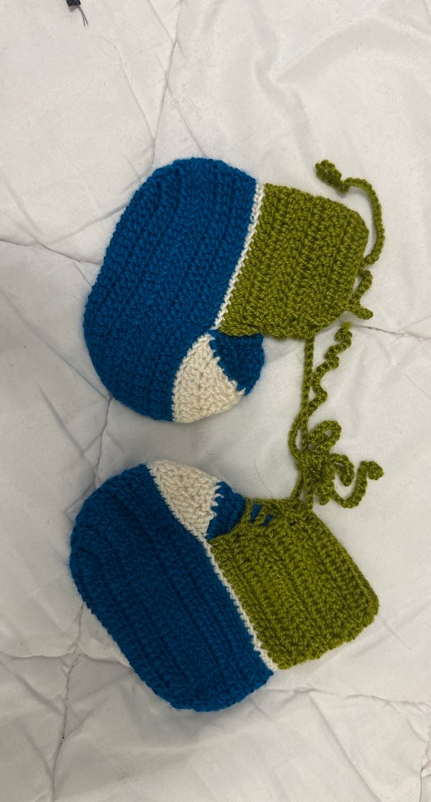 Renkli, örgü dokulu erkek bebek patikleri sade ve bohem tarzda, bağcıklarla güvenli kullanım sağlar.