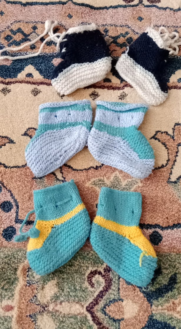 Renkli, yumuşak dokulu erkek bebek örgü patikler, sade bohem tarzıyla küçük ayakları sıcak tutar.