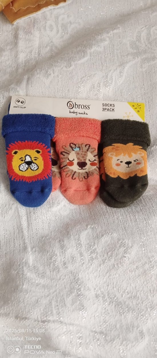 Renkli, hayvan baskılı erkek çocuk çorapları 3'lü set halinde, kaymaz tabanlı ve yumuşak dokuludur.