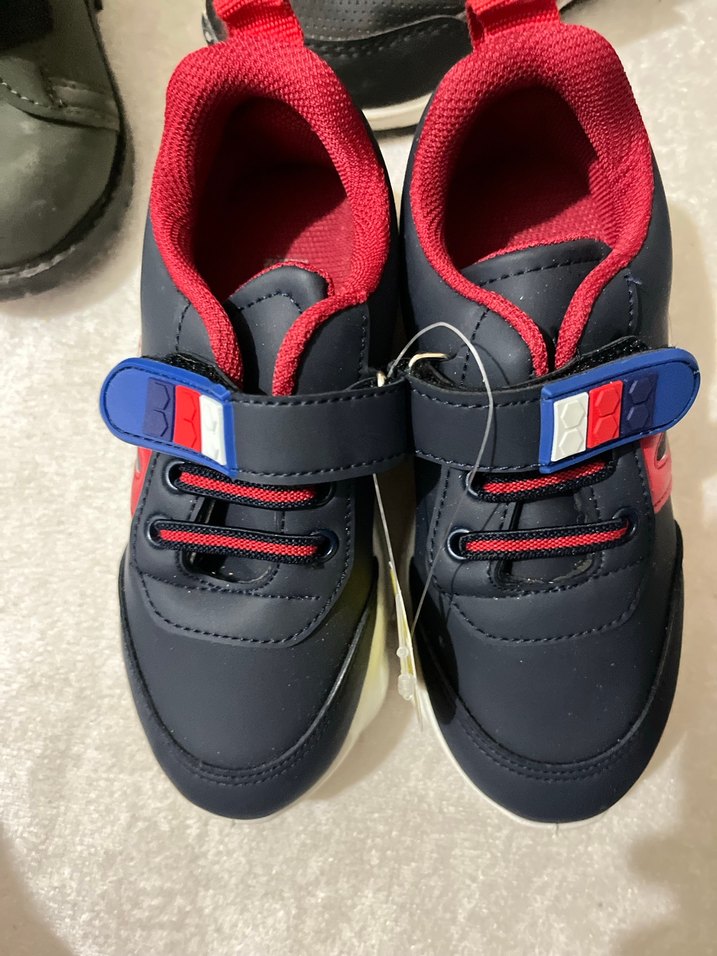 Renkli baskılı desenli, Velcro bantlı erkek çocuk spor ayakkabısı. Kauçuk tabanlı ve sokak stiliyle uyumlu, trend casual görünüme uygun.