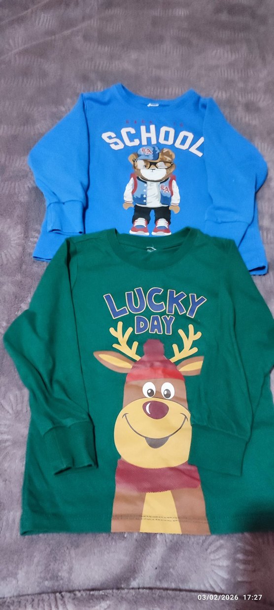 Rahat kesim, uzun kollu ve bisiklet yaka erkek çocuk sweatshirtleri, yumuşak örme kumaştan yapılmıştır. Renkli baskılar ve 'SCHOOL', 'LUCKY DAY' yazıları bulunur.