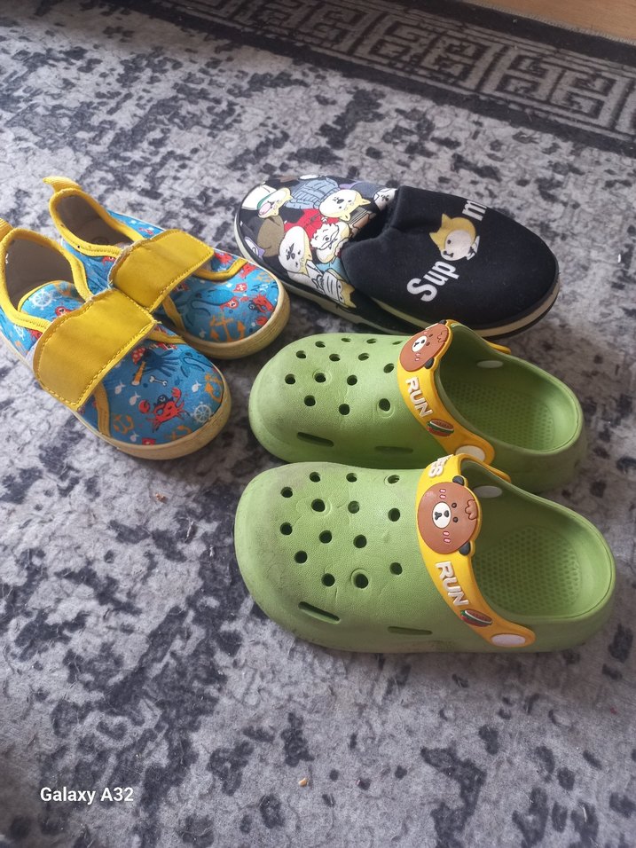 Renkli desenli, kauçuk malzemeden yapılmış, cırt cırtlı erkek çocuk terlik ve sandalet seti. Rahat ve günlük kullanım için uygundur. yeşil24 ev terlik24 ayakkabi23