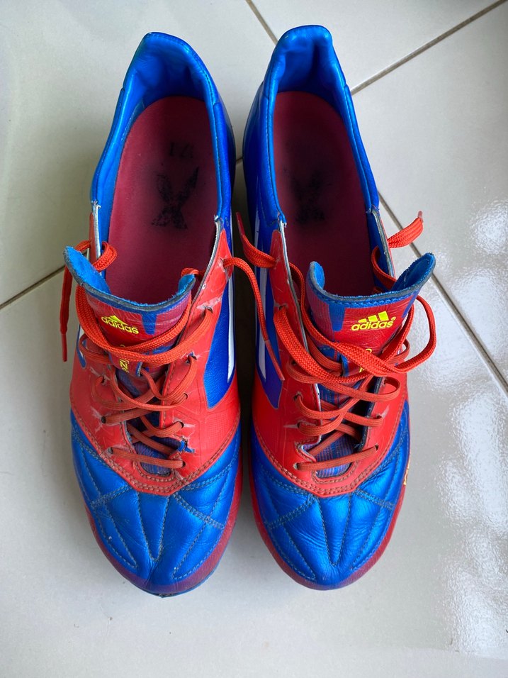Mavi tabanlı renkli erkek futbol ayakkabısı, kauçuk taban ve güvenli tutuş için Velcro bant içerir. Spor ve athleisure tarzına uygundur. ⚽ tam profesyonel adidas f50 sprintframe, civili, tam profesyonel adidas f50 sprintframe, civili, profesyonel futbolcu tarafindan giyildi