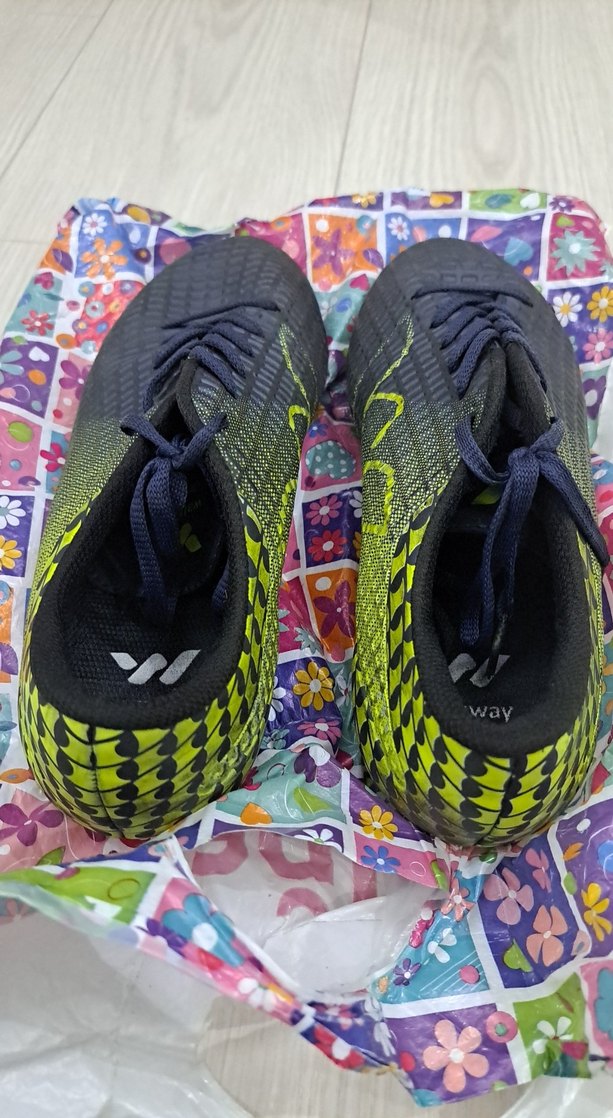 Renkli bağcıklı ve Velcro bantlı erkek futbol ayakkabısı, kauçuk tabanlı ve spor stilinde. Sokak modasına uygun, trend belirleyiciler için ideal. ⚽