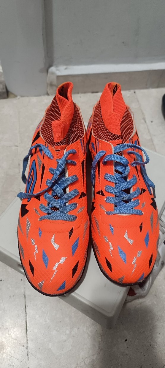 Renkli erkek futbol ayakkabısı, baskılı desen ve kolay ayarlanabilen velcro bant ile. Dayanıklı kauçuk tabanlı, spor ve sokak stiline uygun.