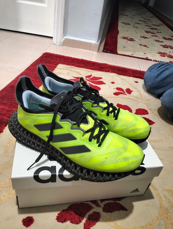 Renkli baskılı tasarıma, siyah bağcıklara ve dayanıklı kauçuk tabana sahip erkek koşu ve antrenman ayakkabısı.