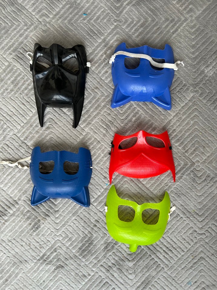 Farklı renklerde, ayarlanabilir bantlı 5 adet erkek maskesi seti.