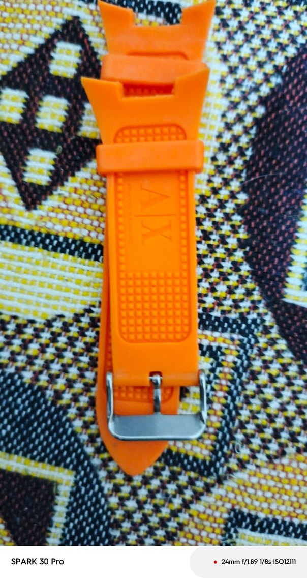Canlı turuncu renkte, dokulu yüzeye ve metal tokaya sahip erkek saat kayışı. Bohem ve retro tarzlara uygundur. ⌚