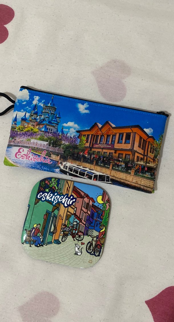 Renkli Eskisehir Baskılı Fermuarlı Cüzdan Seti