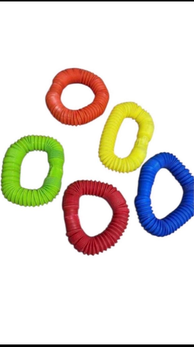 Çeşitli canlı renklerde, esnek ve yumuşak malzemeden yapılmış oyun halkaları seti. Duyu ve oyun aktiviteleri için uygundur.