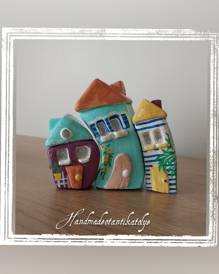 Renkli Ev Figürleri dekoratif objeler