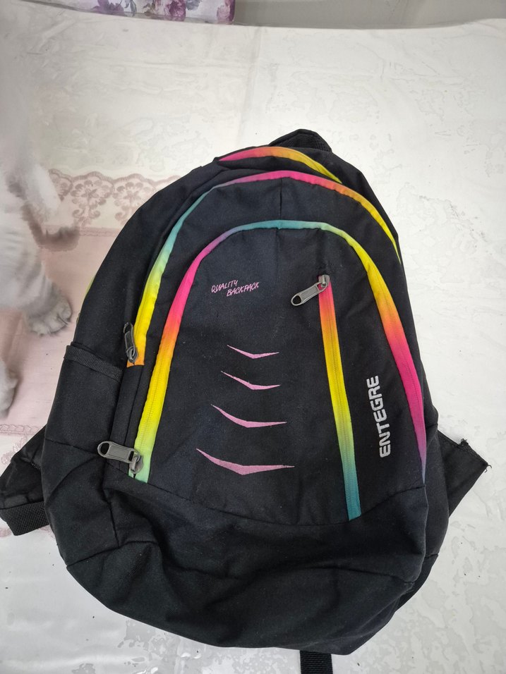 Okul için uygundur, fleece kumaştan yapılmış, fermuarlı renkli kadın sırt çantasıdır. Tie-dye desenli ve rock punk havası taşır, spor için uygundur.