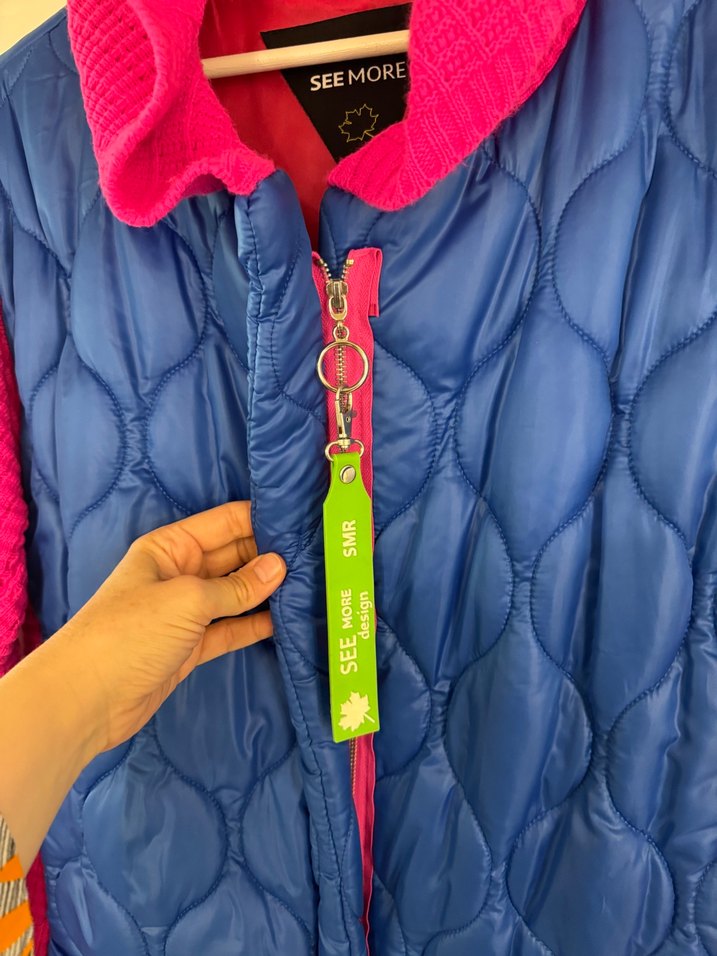 Renkli mont, notlu yaka ve dar kesimlidir. Uzun kollu ve fermuarlı ön kısmı özel anahtarlık detaylıdır. Yumuşak ve sıcak kumaştan yapılmıştır.