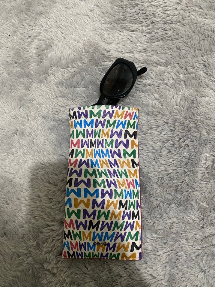 Bu renkli telefon kılıfı, pop kültür esintili deseni ve fermuarlı kapanışı ile dikkat çekiyor. Üzerinde tekrar eden 'WMWMWM' yazı tasarımı bulunur.